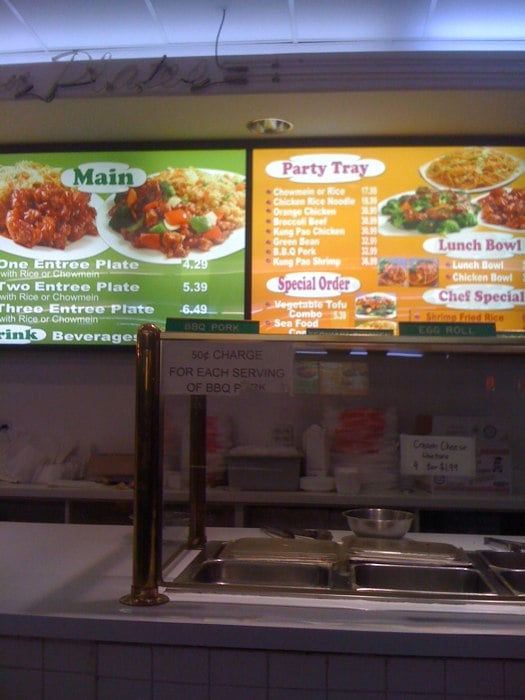 Mongolian beef, kung pao chicken, mandarin chicken and chow mein.